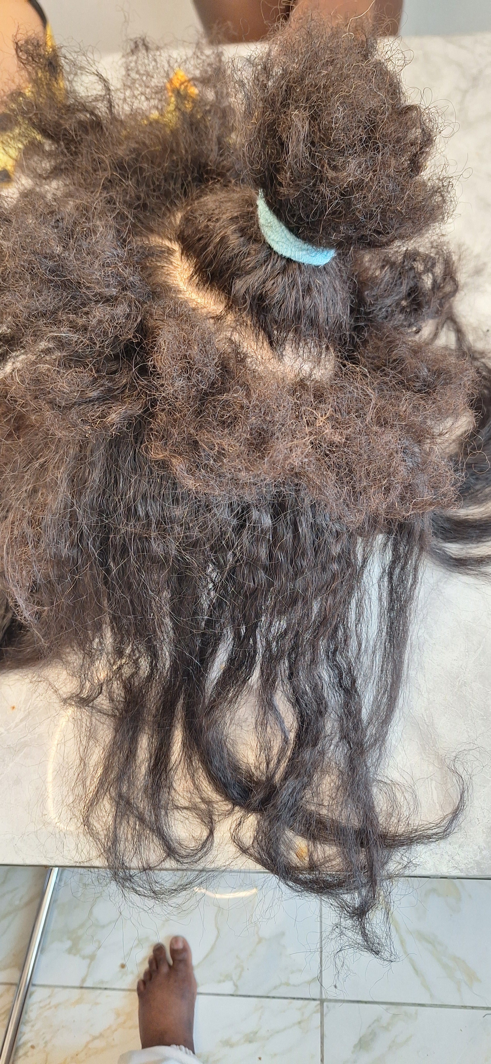 Section your hair and clip in extension at the roots.